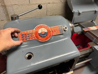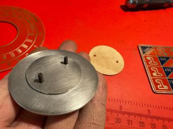 J'ai laissé tomber l'idée de la gravure, essais non concluants pour des caractères aussi petits. Là je suis donc parti sur de la "peinture gravée", le rendu est top et avec le vernis 2k ça sera bien solide. Vernis en train de sécher, demain je pourrais assembler la plaque avec le cadran pivotant. PS: oui ma plaque n'est pas identique à celle d'origine quand à la position des leviers, c'est normal la plaque d'origine était couverte d'une sur-plaque sur la machine qui indiquait d'autres rapports et vitesses.