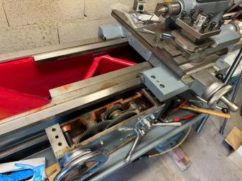 Bon après une grosse bataille avec Chronopost, j'ai enfin reçu le nouveau flasque de broche, il a été parfaitement usiné j'ai pu remonter cette dernière, ainsi que le graissage broche et l'arbre qui supporte le pignon des avances et la roue de transmission. Insupportable à remonter cet arbre, il est bien plus casse pied que la broche elle même.