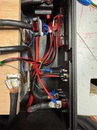 J'pense mettre une cloison a droite de la batterie pour qu'elle s'appuie dessus (avec de la mousse entre les deux bien sur), et ainsi laisser de l'espace pour les connectiques et le disjoncteur 60A.